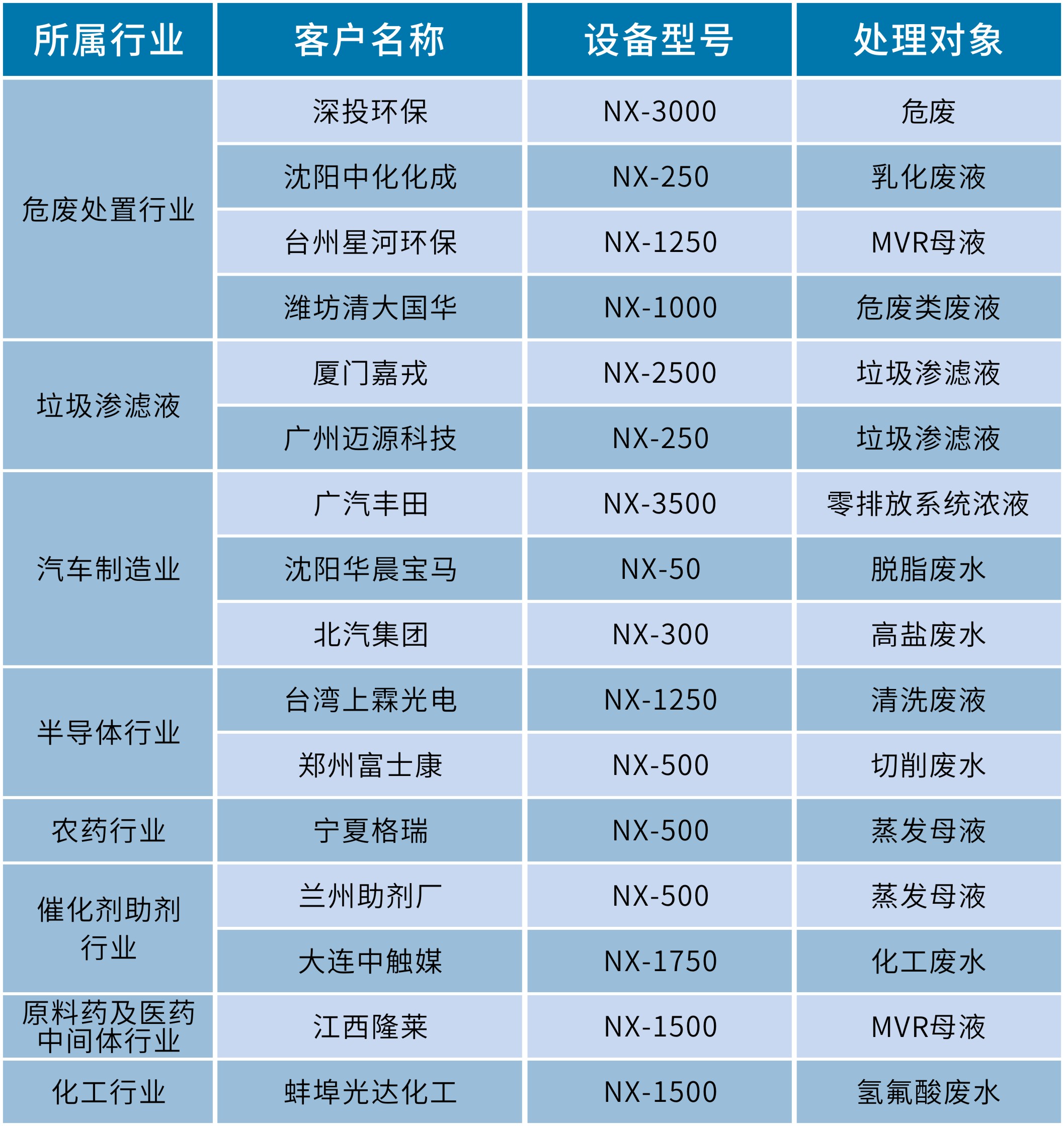 國(guó)內(nèi)超過(guò)120個(gè)案例,涵蓋多個(gè)行業(yè),包括危廢處置行業(yè)、化工行業(yè)、醫(yī)藥行業(yè)、汽車制造行業(yè)、垃圾滲濾液處理等等